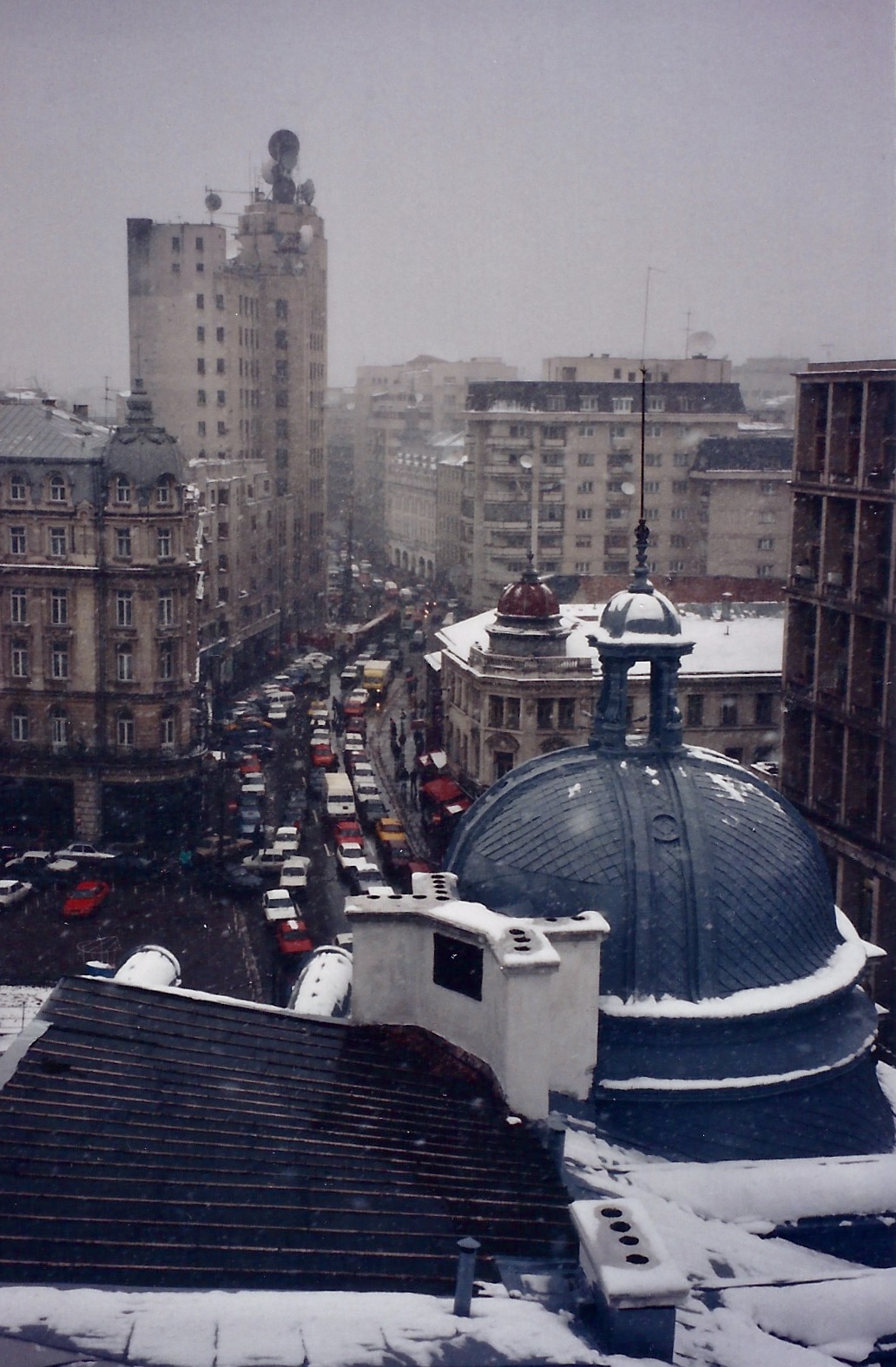 La Roumanie aura été, à partir de 1990, ma porte d’entrée vers l’Est de l’Europe. Sur ces images prises entre 1990 et 1997 : le buste de Lénine, couché contre un mur, en lisière de Bucarest, après son déboulonnage en décembre 1989 ; l’impressionnant bâtiment Casa Scînteii (La Maison de L’Etincelle), rebaptisé Maison de la Presse Libre après la chute du régime Ceausescu ; un train au sud de Bucarest, avec (qui sait ?) le vélo du conducteur pour rentrer chez lui ; un vieil homme dans un café de Tulcea, à l’entrée du delta du Danube ; la Calea Victoriei, une des principales artères de Bucarest.